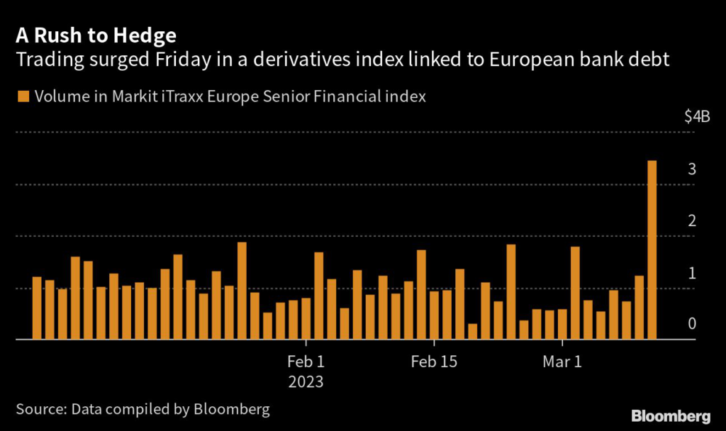 With phones ringing nonstop on credit trading desks Friday as traders and money managers sought to understand the potential fallout from the biggest US bank collapse in more than a decade, investors across the globe rushed to derivatives markets that offered a hedge against losses, trading data show.