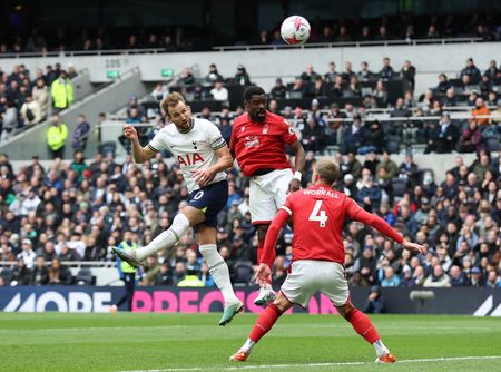 LONDON (Reuters) -Tottenham Hotspur blew away the gloom of a demoralising 10 days as Harry Kane’s double helped them to a 3-1 defeat of Nottingham Forest to cement fourth spot in the Premier League on Saturday.