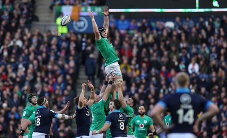 EDINBURGH (Reuters) -Ireland wings Mack Hansen and James Lowe scored a try each as flyhalf Johnny Sexton became the joint leading scorer in Six Nations history following a pulsating 22-7 victory over Scotland at Murrayfield on Sunday.