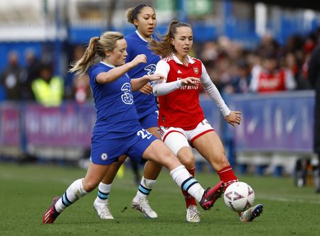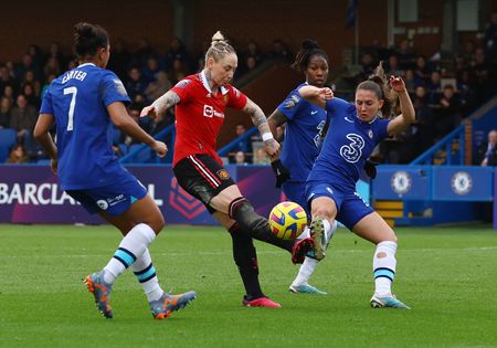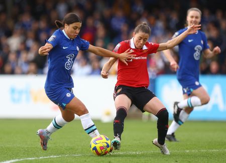 LONDON (Reuters) – Sam Kerr’s superb first-half goal gave Chelsea a 1-0 home win over Manchester United that saw them climb past the Red Devils to the top of the Women’s Super League after a tight, tense encounter at Kingsmeadow on Sunday.