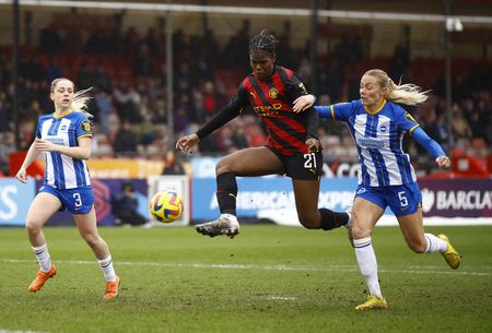 Third-placed Manchester City beat Brighton & Hove Albion 2-1 thanks to a brace from Khadija Shaw to move level on points with their city rivals, while Arsenal remain three points behind City in fourth spot after a 4-0 thrashing of Reading.