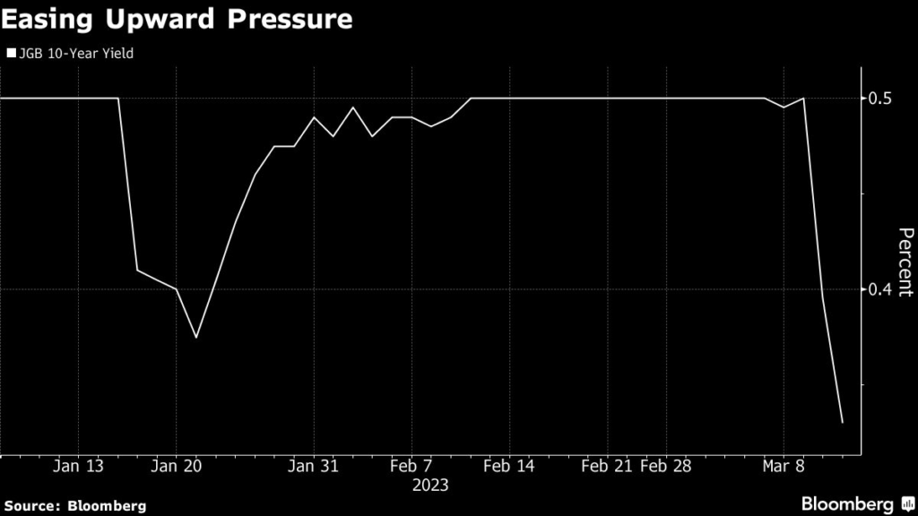 20. The move came in the wake of a slide in US yields after the collapse of Silicon Valley Bank tempered hawkish Federal Reserve rate-hike bets, and may ease pressure on the BOJ to abandon its yield curve control program.
