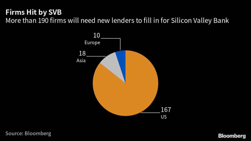 More than 190 companies worldwide that received loans from failed Silicon Valley Bank could be on the hunt for new lenders.