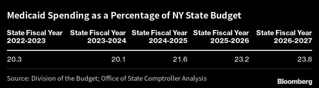 (Bloomberg) — New York State faces billions of dollars in additional costs over the next two years if fewer people than expected leave its public insurance rolls once it resumes screening residents for eligibility.
