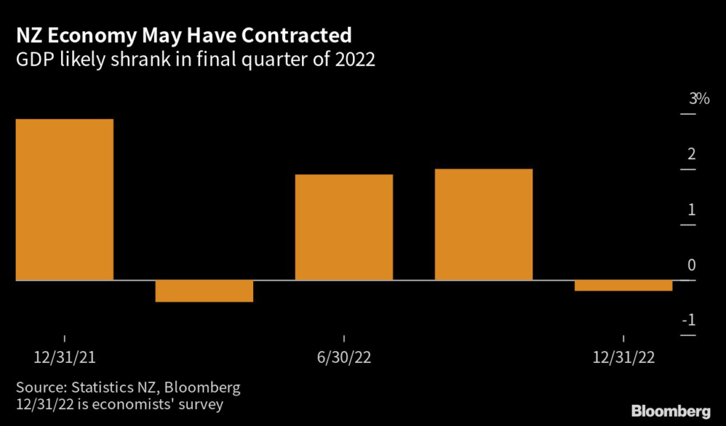 The economy contracted 0.2% in the final three months of last year, according to a Bloomberg survey of economists ahead of data due Thursday in Wellington.