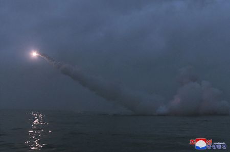 SEOUL (Reuters) -Nuclear-armed North Korea test-fired two strategic cruise missiles from a submarine on Sunday, state news agency KCNA said on Monday, just as U.S.-South Korea military drills were due to begin.