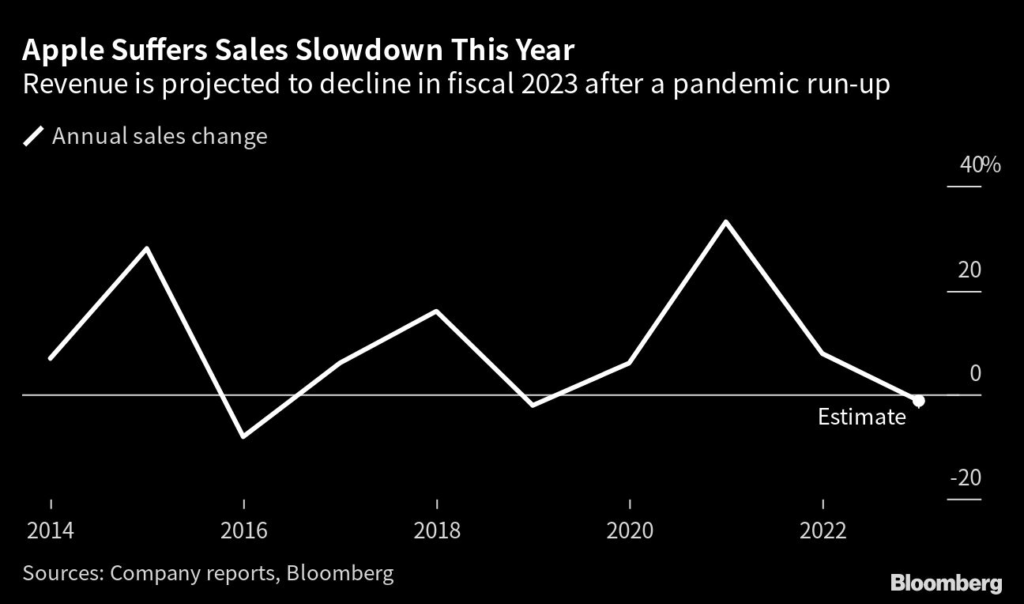 Revenue declined 5% during the holiday quarter, a steeper drop than Wall Street projected, hurt by iPhone production snags and sluggish demand for Macs and wearable devices. Sales are expected to fall by a similar amount in the current period.