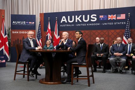 SAN DIEGO/CANBERRA (Reuters) -The United States, Australia and Britain unveiled details of a plan to provide Australia with nuclear-powered attack submarines from the early 2030s to counter China’s ambitions in the Indo-Pacific.