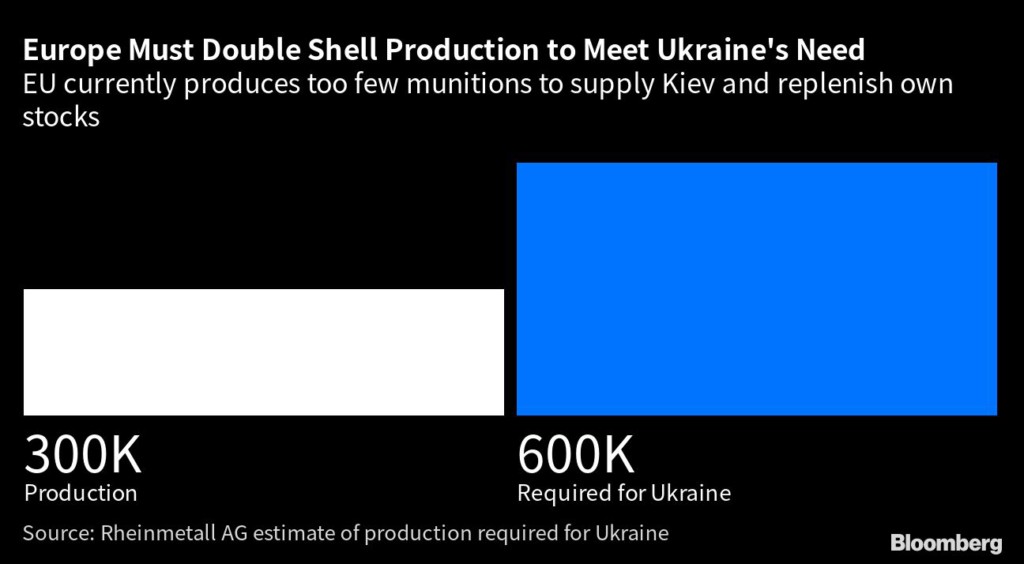 That’s despite repeated warnings from Ukrainian and European officials that sufficient supply of artillery munitions will prove a decisive factor in the ongoing war.