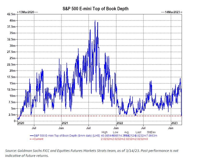 Goldman Sachs Group Inc.’s Scott Rubner, who has studied flow of funds for two decades, calculates the ease of trading S&P 500 futures has plunged 88% over the past two weeks.