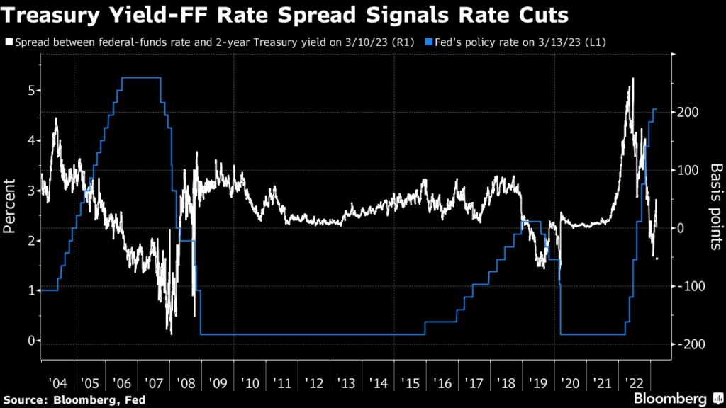 Takei is keeping a close eye on the gap between the federal funds rate and two-year Treasury yield as he notes that the US central bank has tended to stop tightening when rate increases resulted in an inversion.