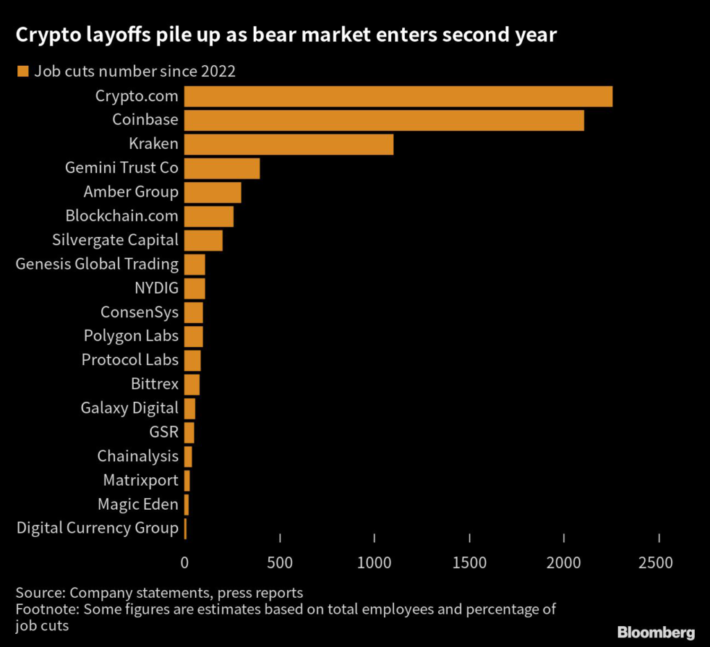 Coinbase Global Inc., Blockchain.com, Genesis and Crypto.com also laid off employees in 2023, leading to more than 2,000 job cuts so far this year.