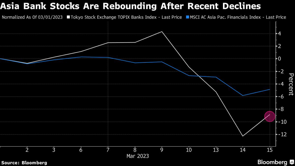 (Bloomberg) — Most banking stocks rose across Asia Pacific as concerns over a broader fallout from Silicon Valley Bank’s sudden collapse eased.