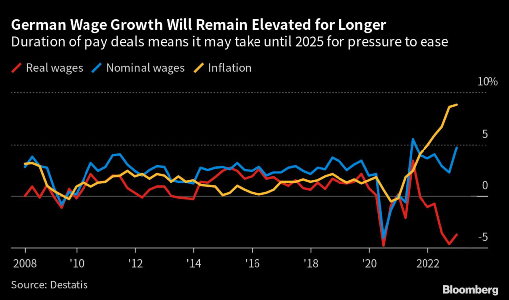 The similarities may raise eyebrows at the European Central Bank, whose policymakers worry that large wage agreements might set off a spiral stoking yet more inflation in the region’s biggest economy.