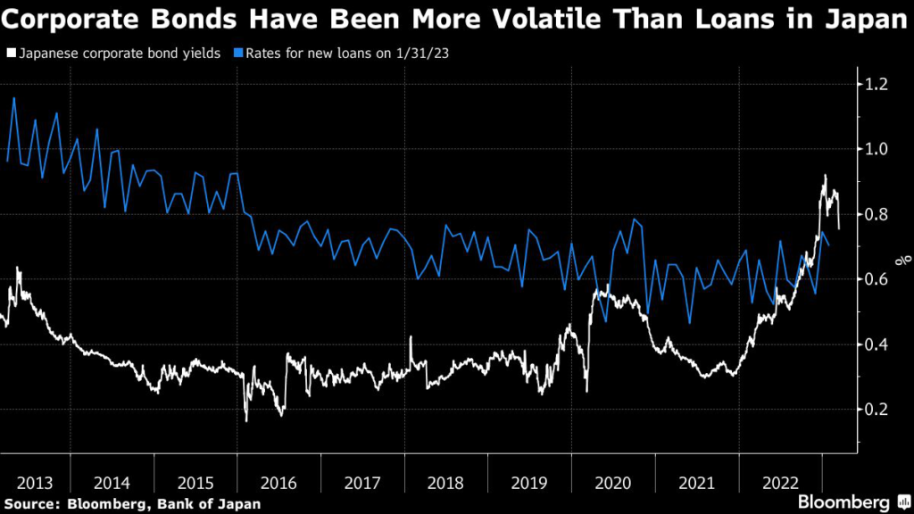 Anecdotal evidence, including from interviews conducted by Bloomberg News, suggests Japanese loan rates are now more favorable than the cost of selling long-tenor bonds for capital investment and refinancing needs, which typically plummet in value if interest rates rise.