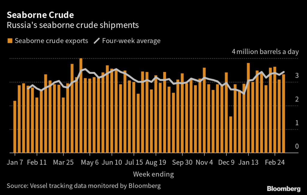 After a year of conflict and international condemnation, “the country is still shipping roughly the same amount of oil to world markets.”