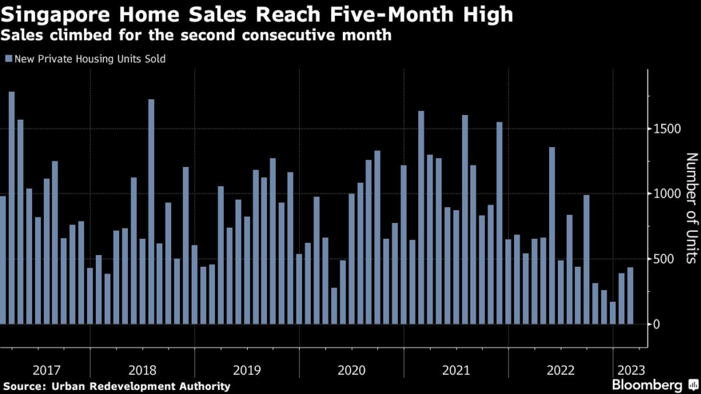 (Bloomberg) — Singapore home sales reached a five-month high as demand returned after a dwindling supply slowed transactions late last year.