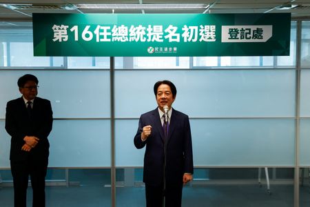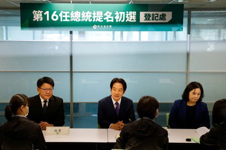 TAIPEI (Reuters) – The candidate likely to represent the ruling party at Taiwan’s next presidential election, Vice President William Lai, pledged on Wednesday to protect the island against China and ensure peace, as he formally registered to run in the campaign.