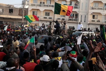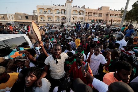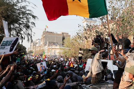 DAKAR (Reuters) -Over 10,000 supporters of Senegalese opposition leader Ousmane Sonko massed at a field in the capital Dakar on Tuesday, the first of three days of planned protests in support of the aspiring presidential candidate, who faces a libel case set to resume this week.