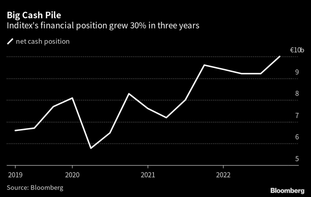 (Bloomberg) — Inditex SA surprised investors with a plan to significantly increase spending on new stores and e-commerce despite closing more than 1,000 shops over the last three years and amid a wider market slowdown in online growth.