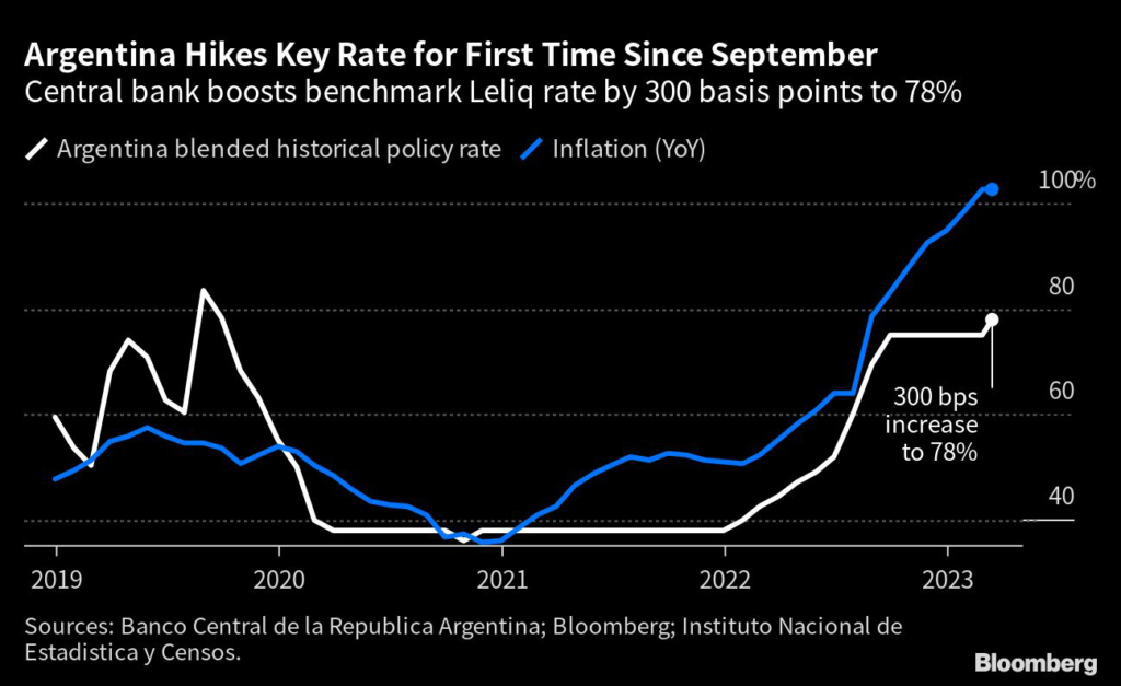 The central bank boosted its benchmark Leliq rate by 300 basis points to 78%.