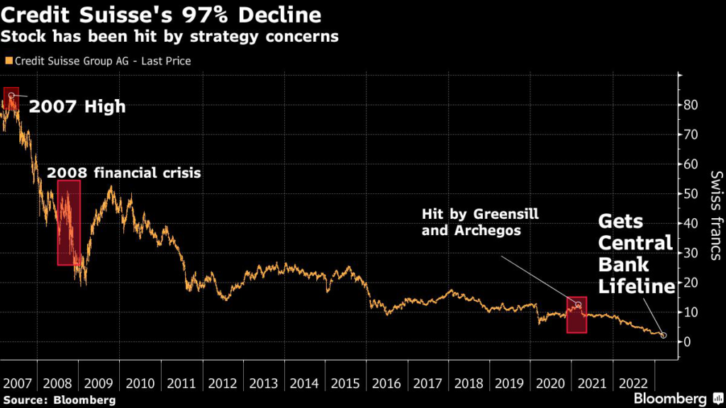 Credit Suisse’s capital position isn’t an issue, but the “situation is about ongoing market confidence issues with its IB strategy and ongoing franchise erosion,” Abouhossein wrote in a note. “Status quo is no longer an option.”