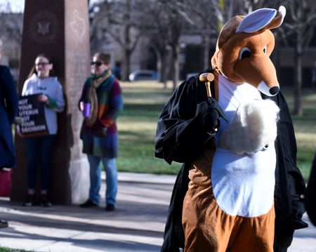 One dressed as a kangaroo and carried a gavel, suggesting that the hearing was a “kangaroo court.”