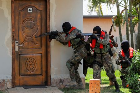 SOGAKOPE, Ghana (Reuters) – The West African troops silently pulled their small boats up to a rust-stained ferry and swarmed up its sides on grappling hooks to disarm the mock kidnappers onboard.