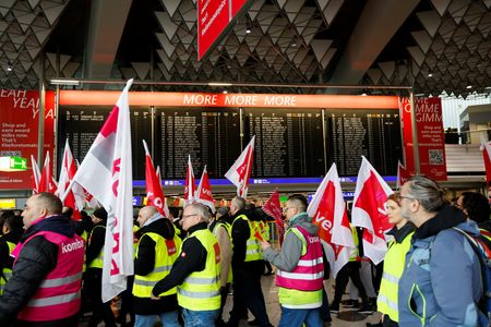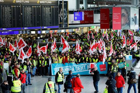 BERLIN (Reuters) – Strikes at four German airports led to the cancellation of hundreds of flights on Friday in the latest bout of industrial action to disrupt travel plans in recent months.