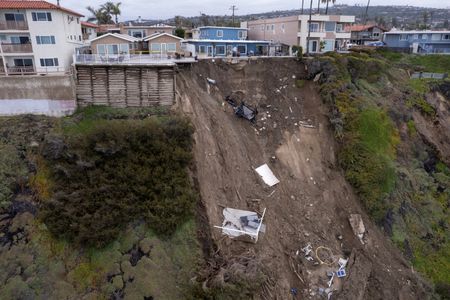 SAN CLEMENTE, California (Reuters) – As heavy rains soaked into already sodden ground in California, mudslides in the beachfront community of San Clemente forced evacuations of blufftop homes this week and in one case left a swimming pool dangling partway off the cliff edge.