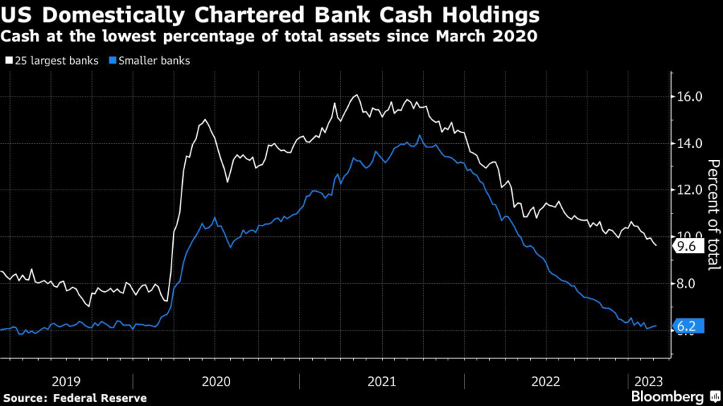 Before that injection of support, the cash assets held by banks — as a share of their total assets — had fallen to the lowest levels in three years.