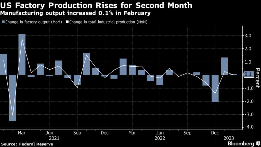 (Bloomberg) — Output at US factories increased unexpectedly in February for a second month, representing a respite for a manufacturing sector that has been sluggish amid rising economic uncertainty.