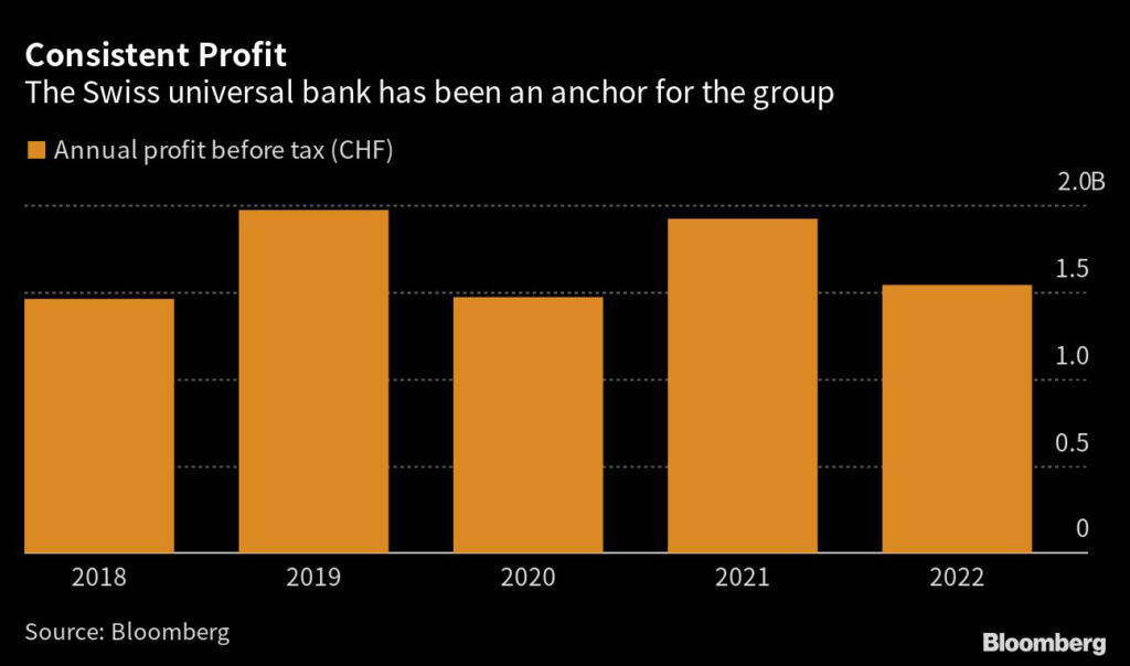The domestic bank has in recent years been a profitable anchor while the rest of Credit Suisse has lurched from crisis to crisis.