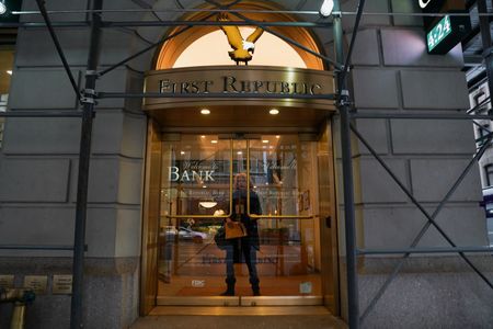 regional bank shares were fell sharply on Friday and the S&P Banks index tumbled 4.6%, bringing its decline over the past two weeks to 21.5%, its worst two-week calendar loss since the COVID-19 pandemic shook markets in March 2020.