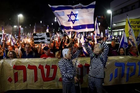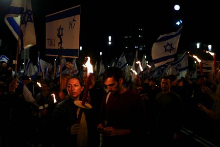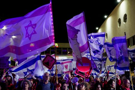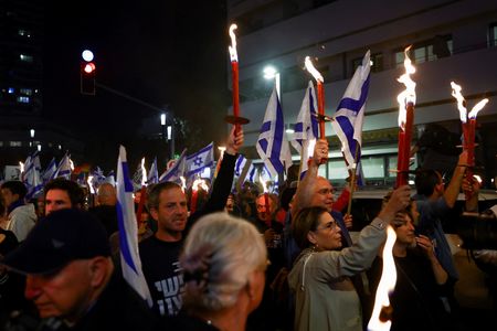 TEL AVIV (Reuters) -Israelis packed city streets on Saturday in nationwide demonstrations now in their 11th week against plans by the hard-right government to curb the Supreme Court’s powers, which critics see as a threat to judicial independence.