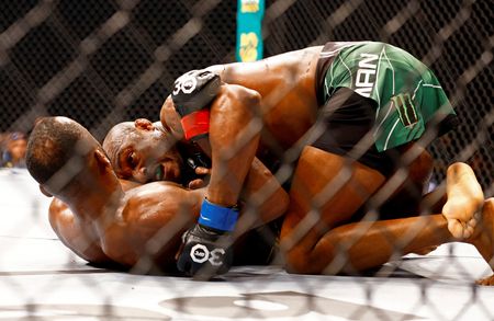 LONDON (Reuters) – Britain’s Leon Edwards emerged victorious after a gruelling five-round battle with Kamaru Usman to retain his welterweight title, scoring a majority decision win on the judges’ scorecards at UFC 286 on Saturday.