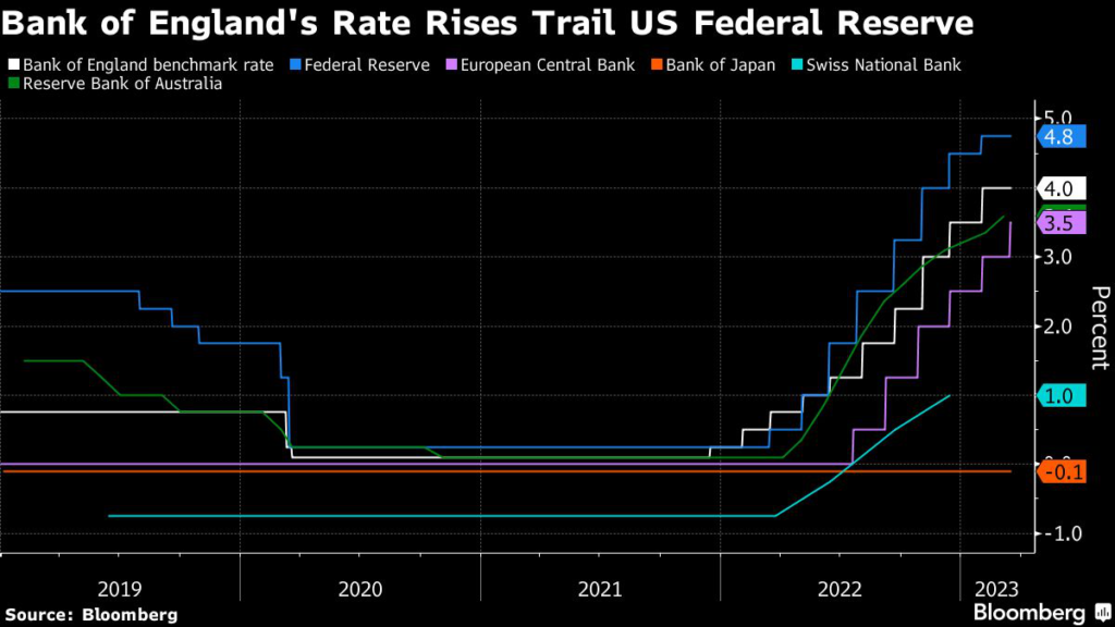 Just two weeks ago, the BOE was all but certain to deliver another quarter-point increase in its benchmark lending rate to 4.25%, continuing its quickest tightening spree in three decades.