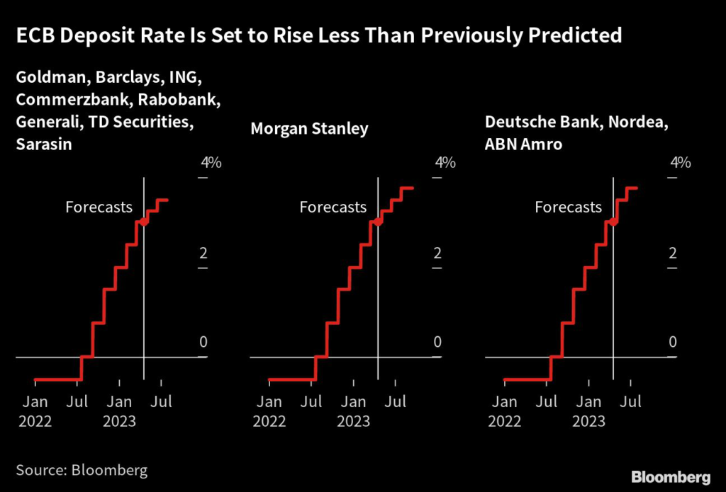 After pricing a peak in the deposit rate — currently 3% — of more than 4%, traders are now betting it will ultimately settle at 3.10%.