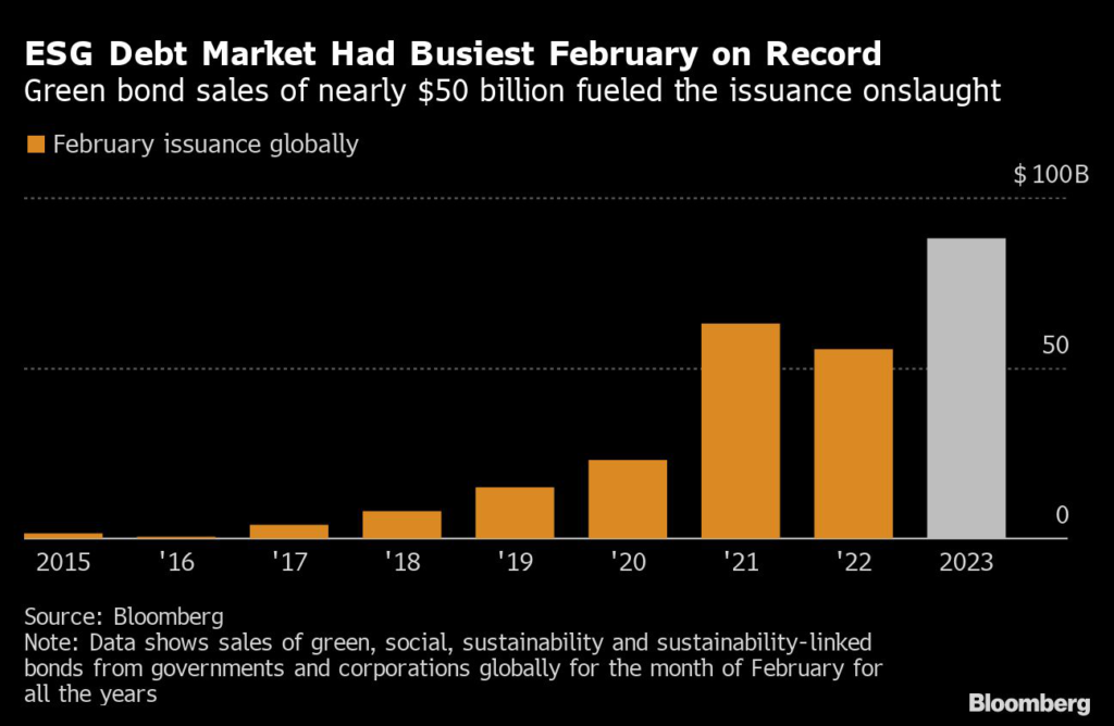 The global ESG bond market had its busiest February on record, driven by large deals from governments and a string of debut transactions from big corporations.