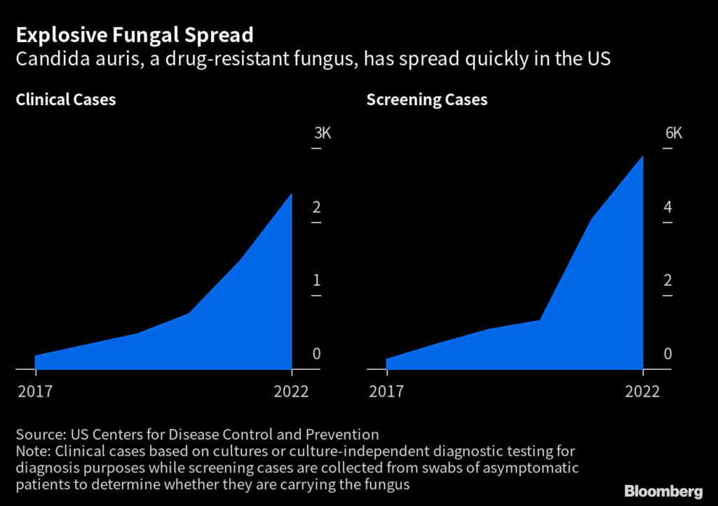 (Bloomberg) — A deadly drug-resistant fungus spreading across the US saw a dramatic uptick in cases during the Covid pandemic, with more than half of all states now reporting cases.
