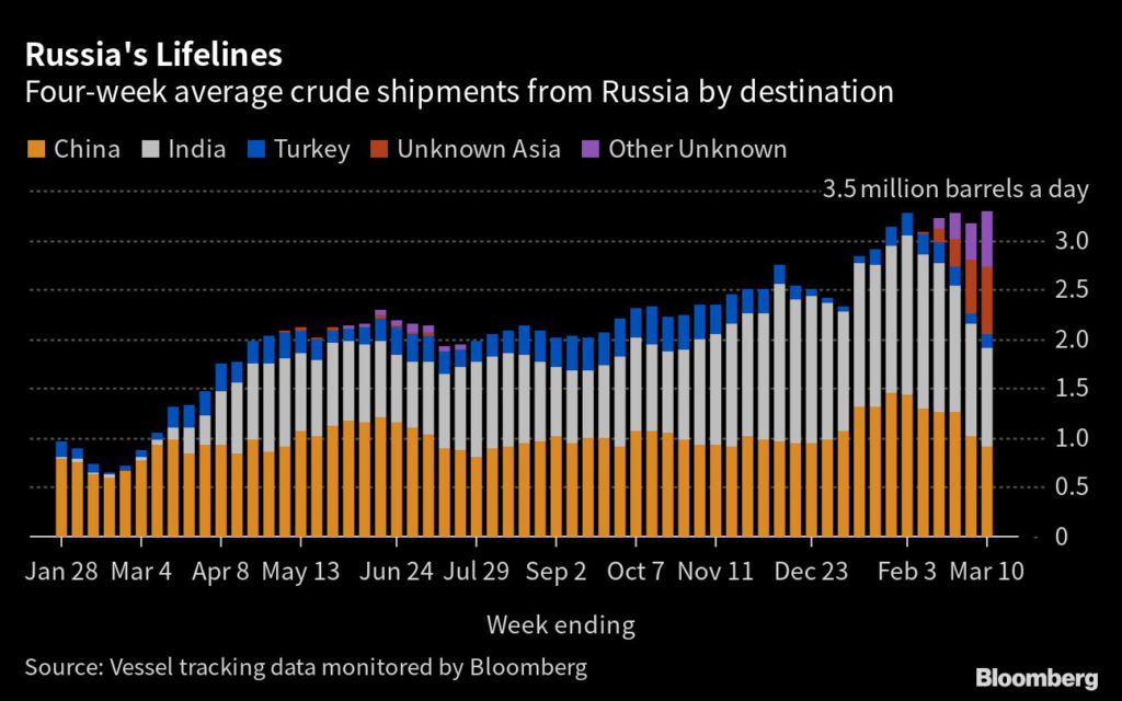 That is enough oil to meet the entire needs of the UK or Italy, and it’s more Russian oil than trading giants like Trafigura Group or Vitol Group would generally have handled before the war in Ukraine.