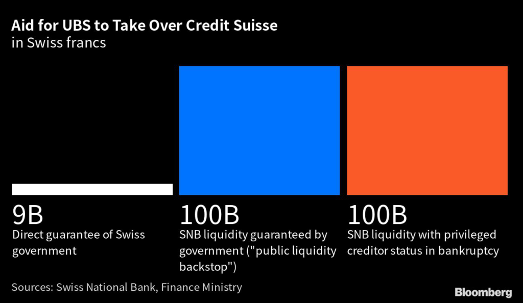 On top of that, there’s a guarantee from the Swiss National Bank of 100 billion francs that isn’t backed by a government guarantee, according to the deal announced Sunday evening.