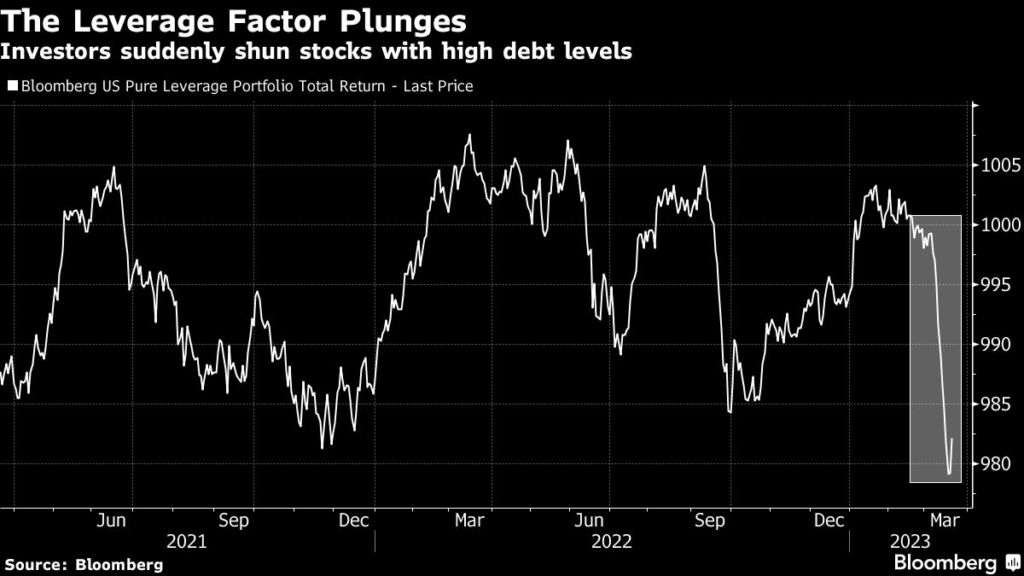 As traders grapple with tightening credit, a Bloomberg index that goes long highly leveraged stocks and shorts those with limited debt just posted its worst week since April 2020.