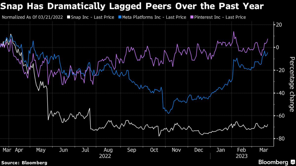 The stock’s 68% drop over the past year compares with a 7.7% gain in Pinterest Inc. and a 3.6% decline in Meta, the Facebook parent that has regained Wall Street’s favor in recent months with aggressive cost reductions, including multiple rounds of layoffs that prompted upgrades from both Morgan Stanley and KeyBanc Capital Markets this week.