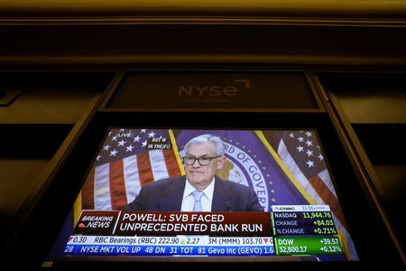 NEW YORK (Reuters) -U.S. stocks retreated from near two-week highs on Wednesday after the Federal Reserve raised borrowing costs, but signaled that it might be on the verge of pausing future interest rate hikes amid recent turmoil in financial markets.