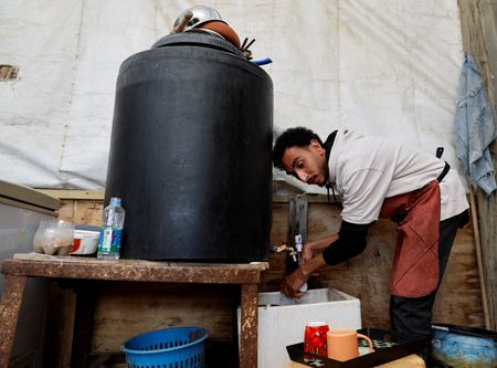 In the heart of Gaza City, Saeed Lulu, a media graduate stands selling hot drinks to passersby and taxi drivers at a stall he calls “The Graduates stall”.