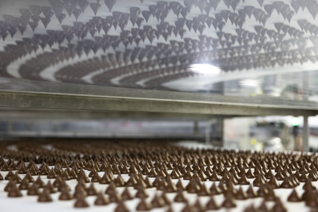 Its West Hershey production facility in Pennsylvania is a far cry from Willy Wonka’s chocolate waterfalls and edible meadows.