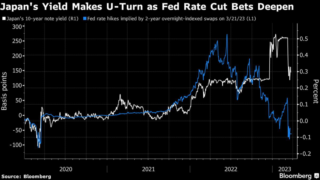“There’s almost no chance for the Bank of Japan to alter its yield-curve-control program in April” given the uncertainties facing the Fed in future meetings, Chotaro Morita, chief rates strategist at SMBC Nikko Securities Inc.
