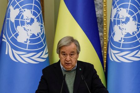 BRUSSELS (Reuters) -European Union leaders held talks on Thursday with U.N. chief Antonio Guterres on global food security and sanctions imposed on Russia over its invasion of Ukraine, and also endorsed a plan to supply more artillery shells to Kyiv.