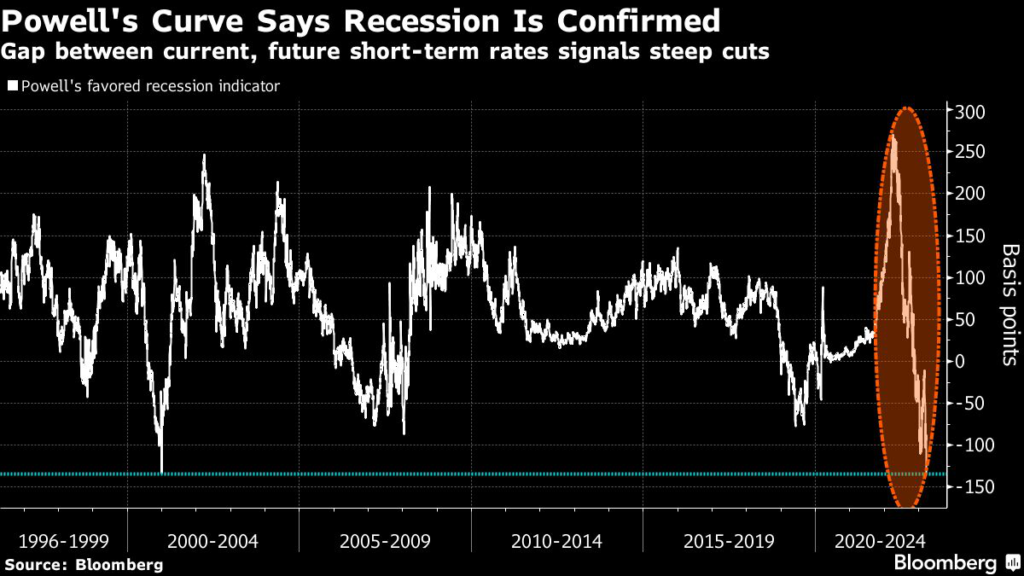 A recession is certain and so are rate cuts this year. That’s the message from the bond market metric Federal Reserve Chairman Jerome Powell highlighted a year ago as the best guide to tip-off economic troubles in the US.